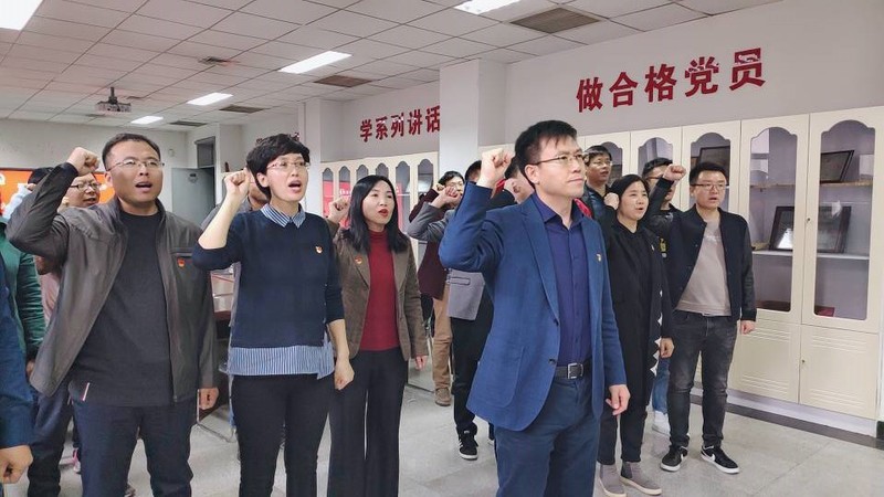 随后蔺洪全副处长带领两支部党员面向党旗重温入党誓词,作为共产党人,不忘初心、牢记使命,砥砺前行。