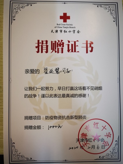 疫情无情,人间有爱。在自愿捐款支持新冠肺炎疫情防控工作中,学院师生党员、民主党派教师,群众们更是自愿通过多种途径捐献了善款,奉献了爱心。全院师生党员积极投身于学校组织的捐款活动中,汪晓银老师通过大学校友群向襄樊南漳人民医院捐款1000元用于购买防护服,常浩老师通过华中科技大学天津校友会向武汉华科协和医院捐款500元,入党积极分子于雅凝同学将新发的一等奖学金1600元全额捐给疫情防控工作,银紫君同学捐款更是高达2020元,民主党派教师也不落其后,翟延慧老师向天津市红十字会和湖北省慈善总会共捐款1050元,涓滴小流,汇成大海,成为我们打赢这场疫情防控阻击战的重要力量。