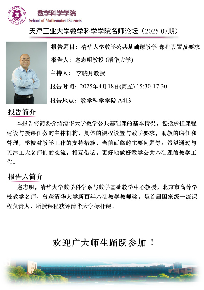 天津工业大学数学科学学院名师论坛(2025-07期)