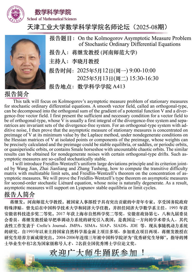 天津工业大学数学科学学院名师论坛(2025-08期)