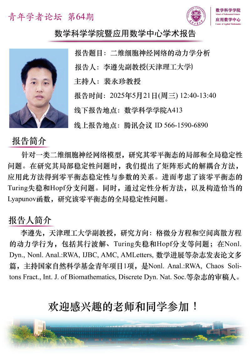 天津工业大学数学科学学院学术报告(青年学者论坛第64期)