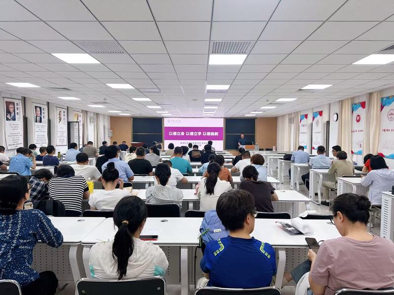 为深入贯彻落实党的教育方针,强化师德师风建设,教育引导广大教师严格遵守师德规范,营造风清气正的教育生态,2025年5月22日,学院党委书记张录全在学院B327为全体教师讲授“师德”必修课。