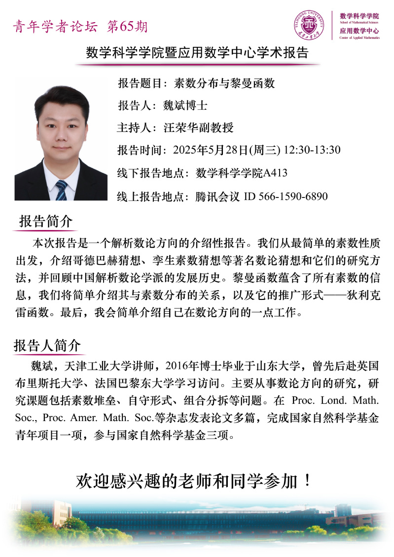 天津工业大学数学科学学院学术报告(青年学者论坛第65期)