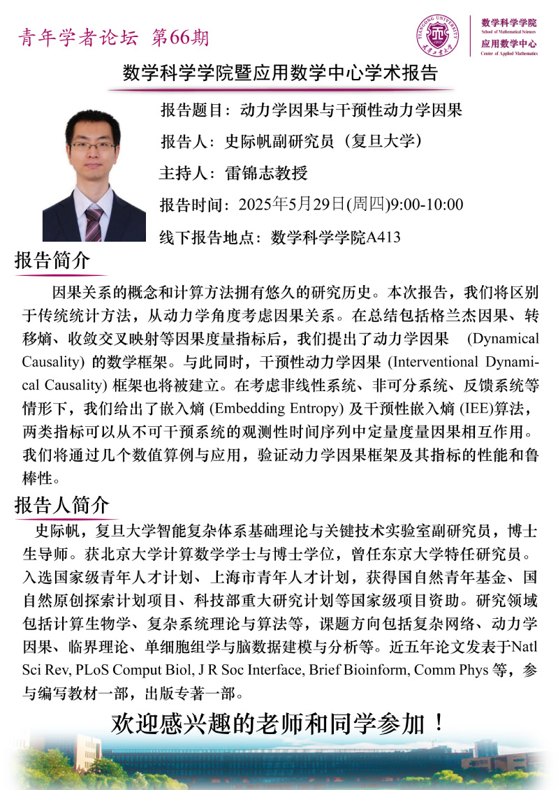 天津工业大学数学科学学院学术报告(青年学者论坛第66期)