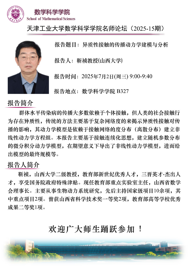 天津工业大学数学科学学院名师论坛(2025-15期)