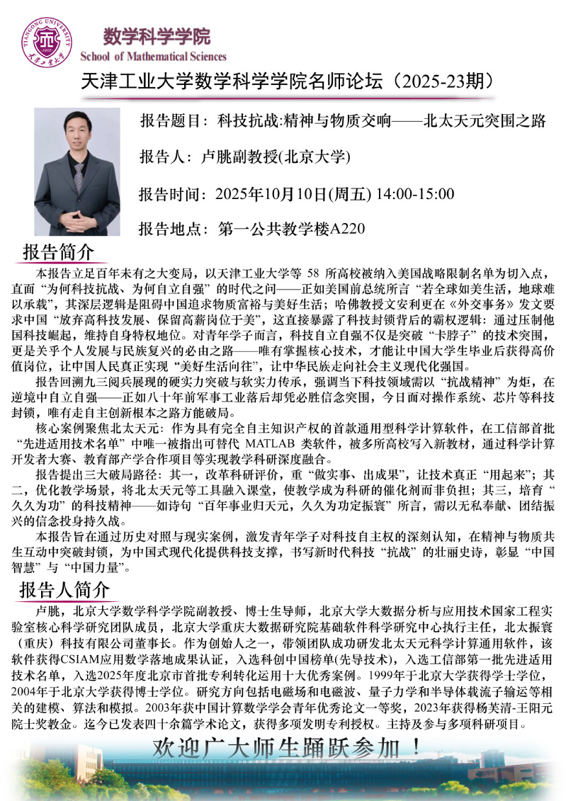 天津工业大学数学科学学院名师论坛(2025-23期)