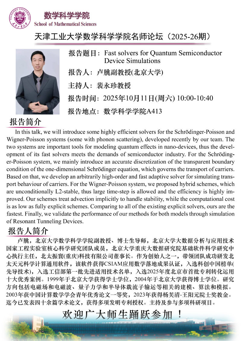天津工业大学数学科学学院名师论坛(2025-26期)
