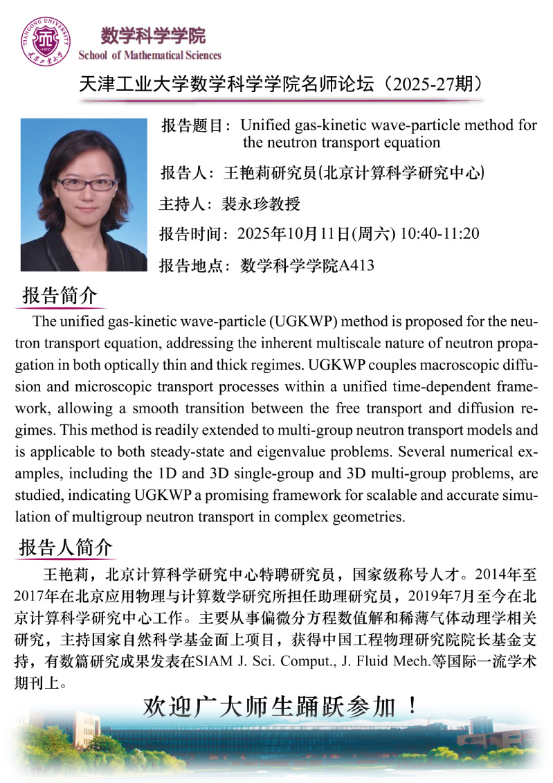 天津工业大学数学科学学院名师论坛(2025-27期)