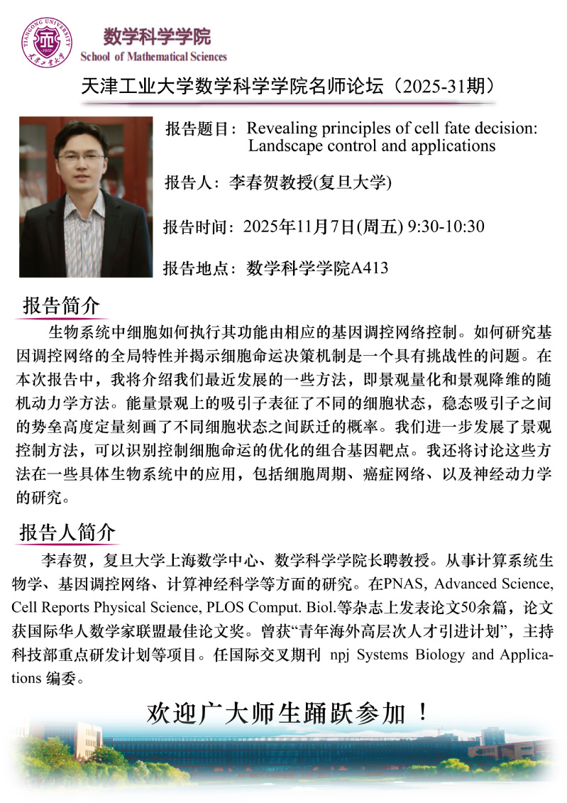 天津工业大学数学科学学院名师论坛(2025-31期)