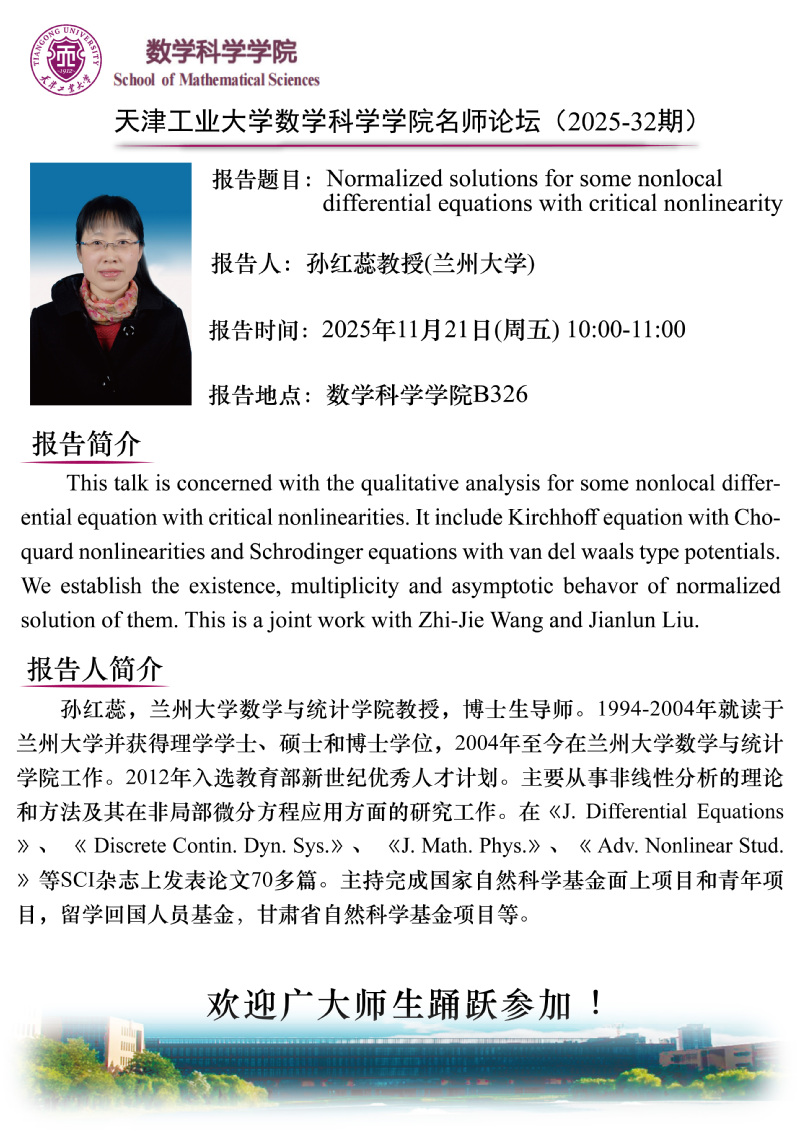 天津工业大学数学科学学院名师论坛(2025-32期)