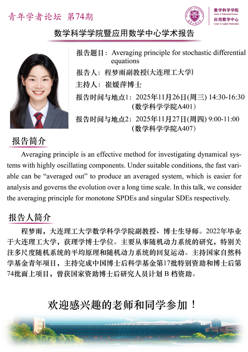 天津工业大学数学科学学院学术报告(青年学者论坛第74期)