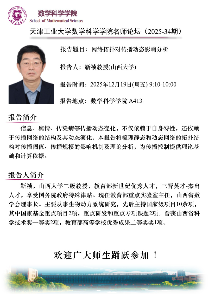 天津工业大学数学科学学院名师论坛(2025-34期)
