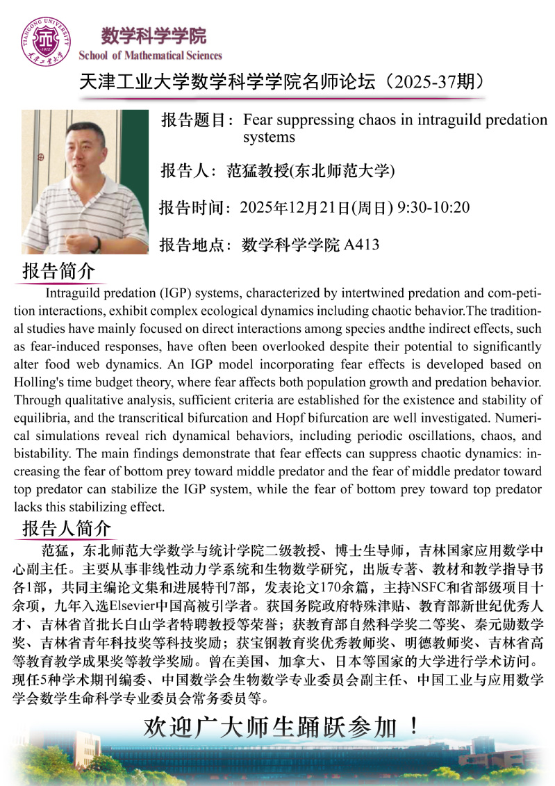 天津工业大学数学科学学院名师论坛(2025-37期)