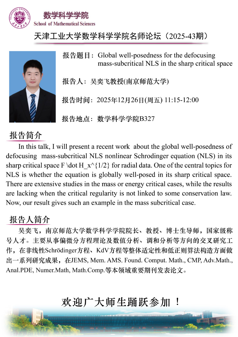 天津工业大学数学科学学院名师论坛(2025-43期)