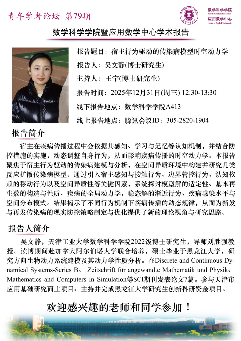 天津工业大学数学科学学院学术报告(青年学者论坛第79期)