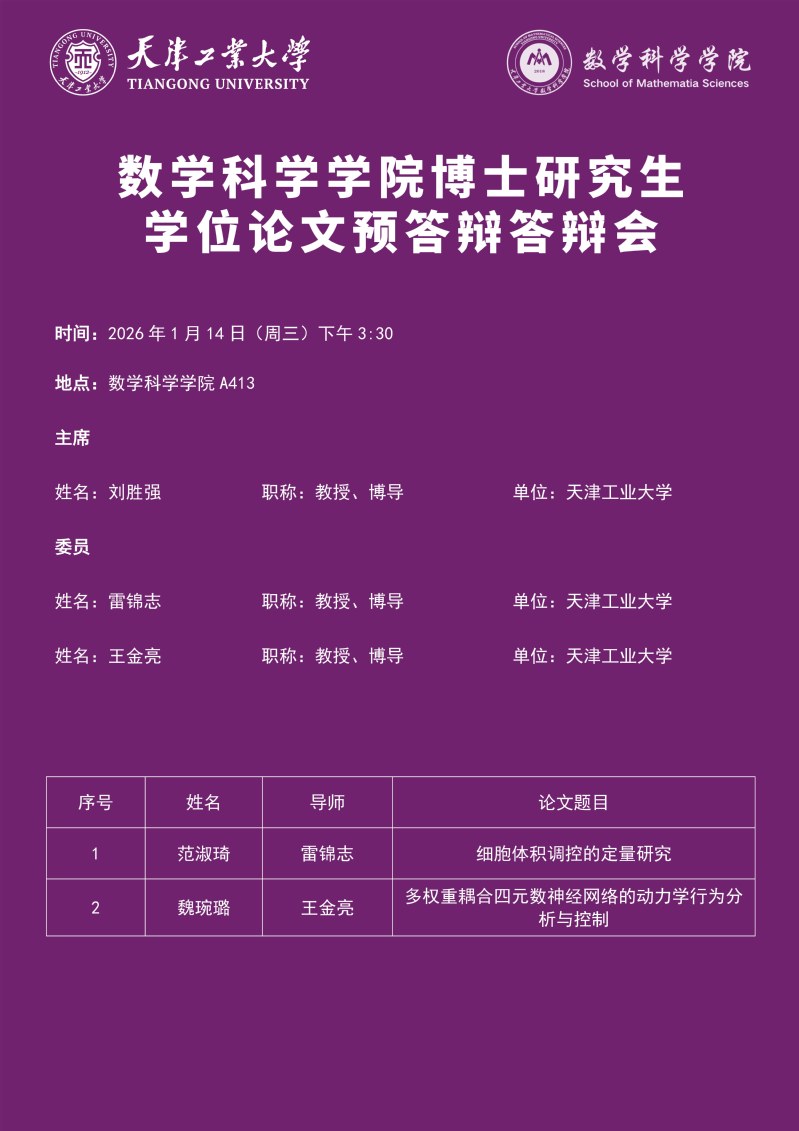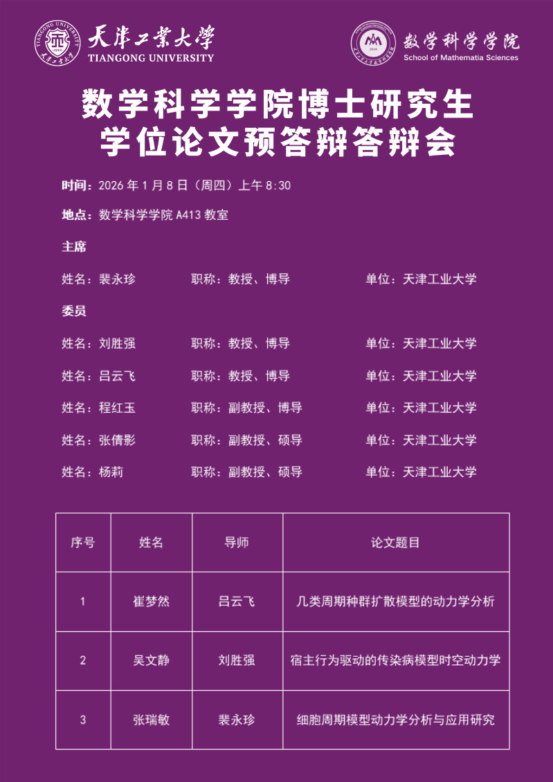 数学科学学院2022级博士研究生学位论文预答辩答辩会