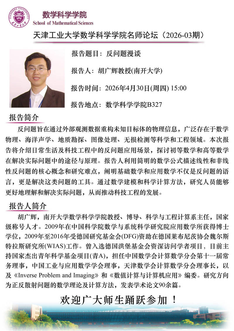 天津工业大学数学科学学院名师论坛(2026-03期)