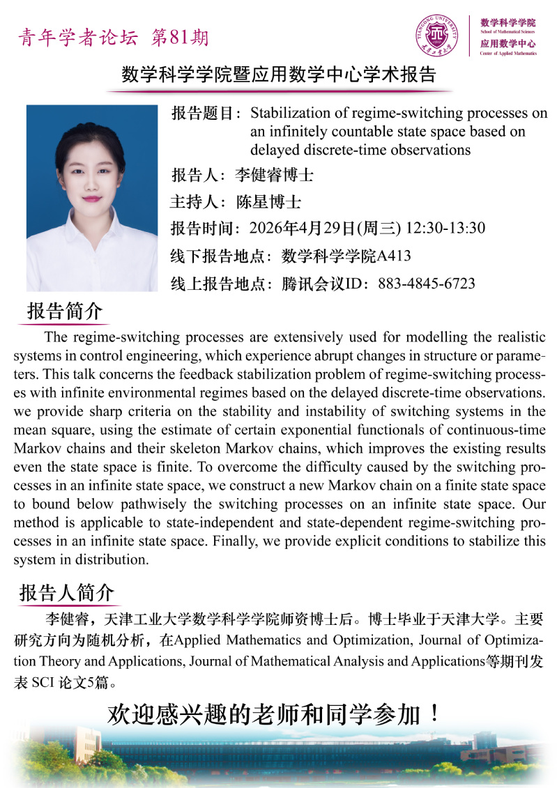 天津工业大学数学科学学院学术报告(青年学者论坛第81期)